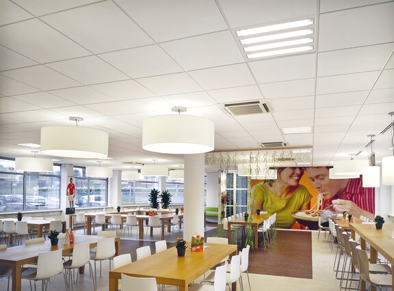 Потолочная плита DUNE Supreme имеет микроперфорацию, а ее поверхность покрыта мелкой кальцидной крошкой. Благодаря этому достигается оптимальный баланс звукопоглощения и звукоизоляции, что делает данную плиту идеальным выбором для помещений различного назначения.